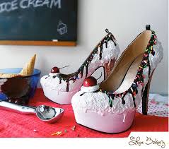No, you can't eat these shoes! Chris Cambell, an American fashion designer, made them. They are decorated with synthetic cockies, ice-cream sundaes and chocolate cakes. Clients can costumize their shoes, but they are expensive-these shoes cost 250 dollars!